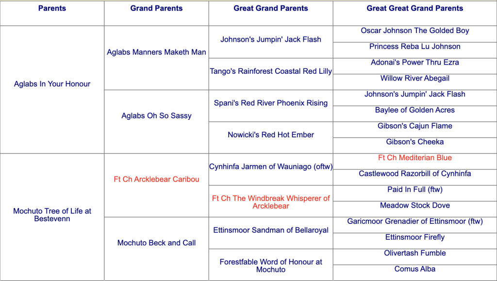 • Sire: Aglabs In Your Honour, fully health tested